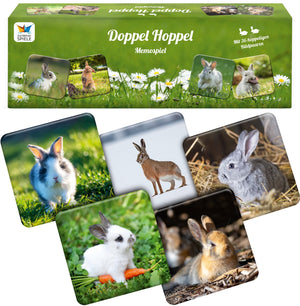 Das Memospiel Doppel Hoppel ist die ideale Geschenkidee für alle Hasenfreunde und natürlich Fans von Gedächtnisspielen. Doch lassen Sie sich nicht zu sehr von den niedlichen Langohren verzaubern! Einige Motive sehen sich zum Verwechseln ähnlich, so dass man schon genau hinsehen muss, um das richtige Bildpaar zu finden.
